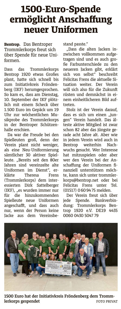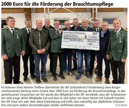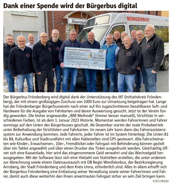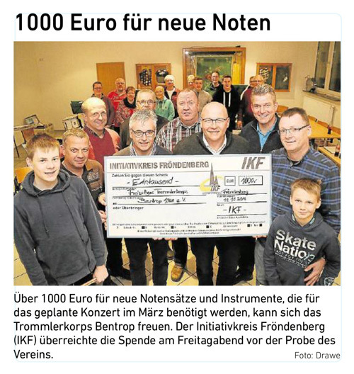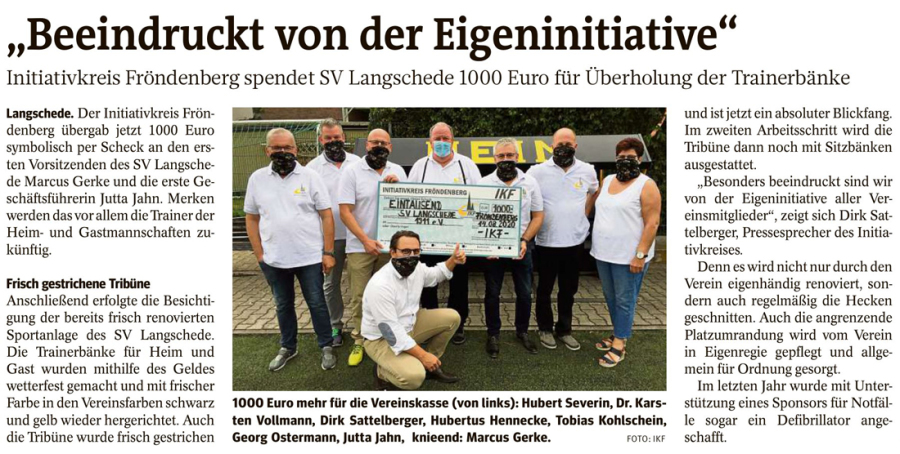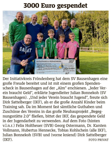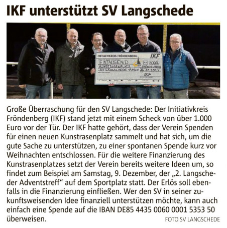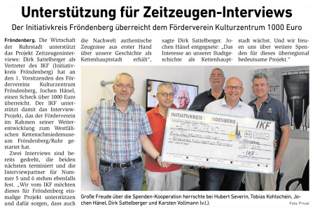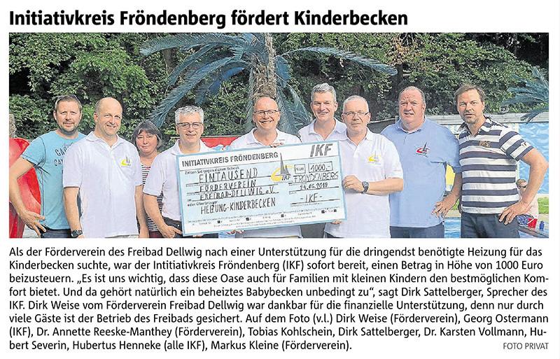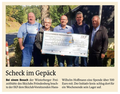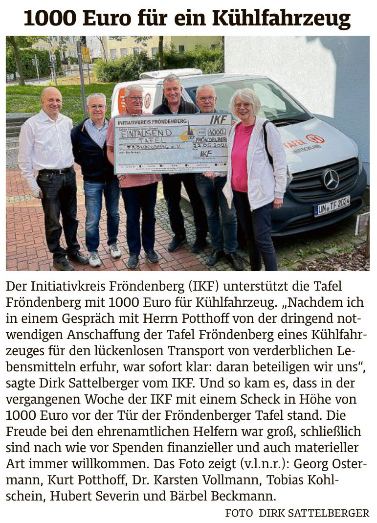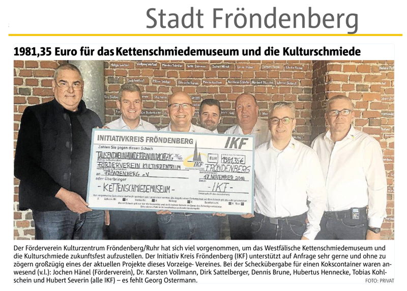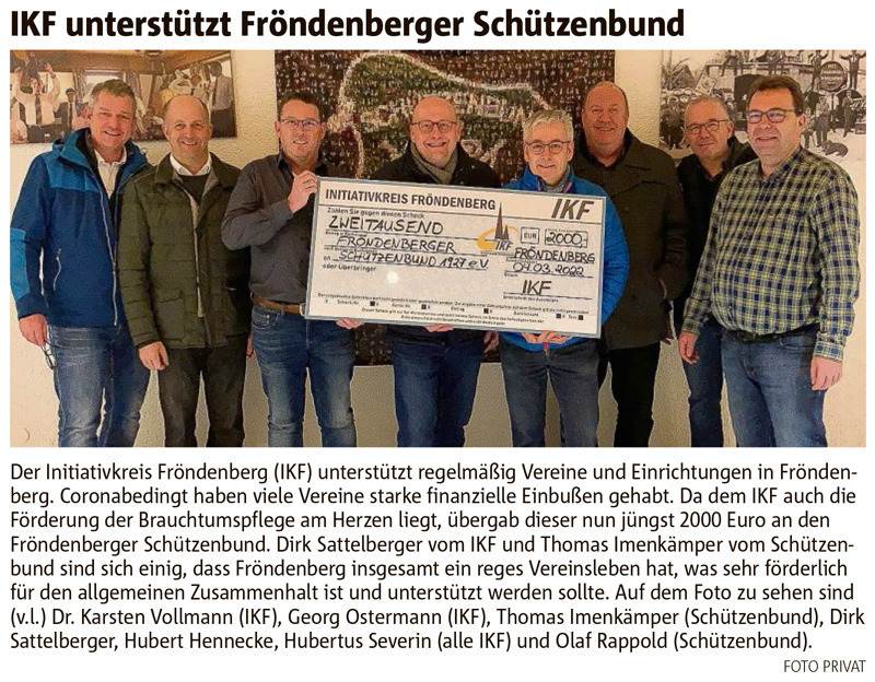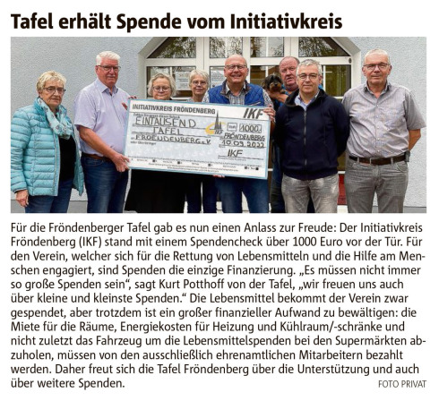 (Initiativkreis Fröndenberg) keine große Sache, sich auch hier mit einer großzügigen Finanzspritze zu beteiligen. Mit der Spende von 2.000 € unterstützt der IKF die überaus wichtige Arbeit der